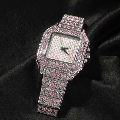 Overall, the Bling Watch is a relogio masculino (masculine watch) that exudes luxury and style. With its diamond-encrusted design and Roman clock, it is a timepiece that is both functional and fashionable.