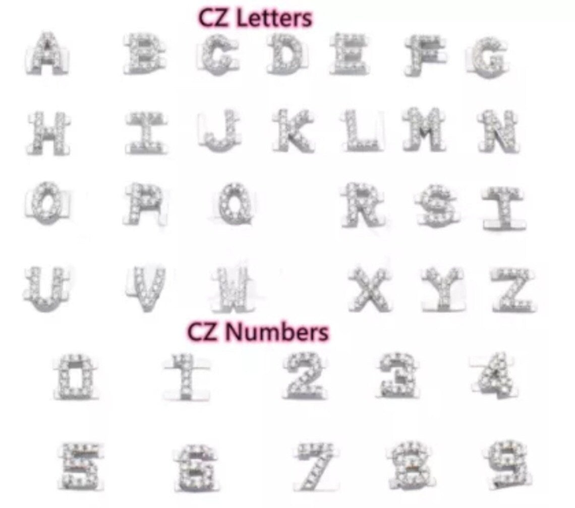 Create & Personalize your Slider Bangle. Our Regular size bangle is 17CM and can fit up to 13 charms best with 9-10 charms, so letters can slide. Our smaller bangle 14CM fits 11 charms.